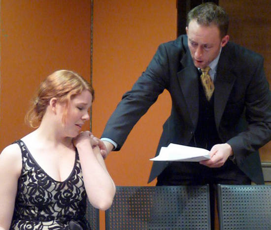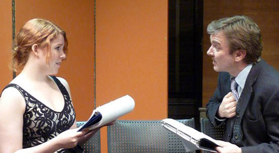 Clive (Jeffrey Eiche) learns his ex-wife, Lady Kitty, is returning for a visit ... and she's bringing the man she left him for! | Lady Kitty (Paula Hoza), lover of lipstick and romance, reminisces. | The 'other man', Lord Porteous (David Seatter), is less than pleased to see Lady Kitty flirting with her ex-husband. |